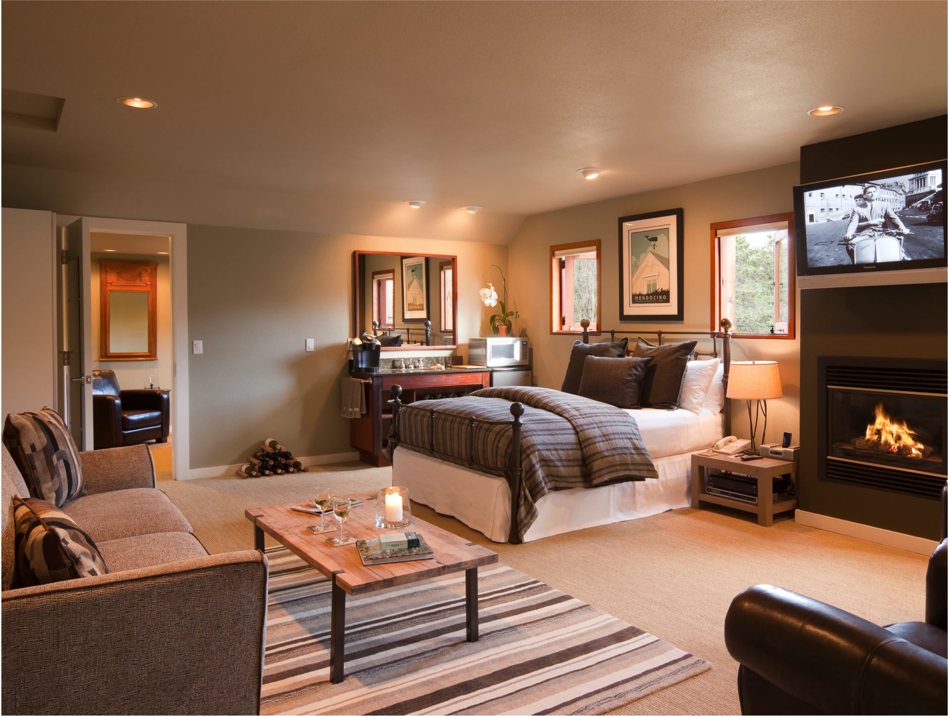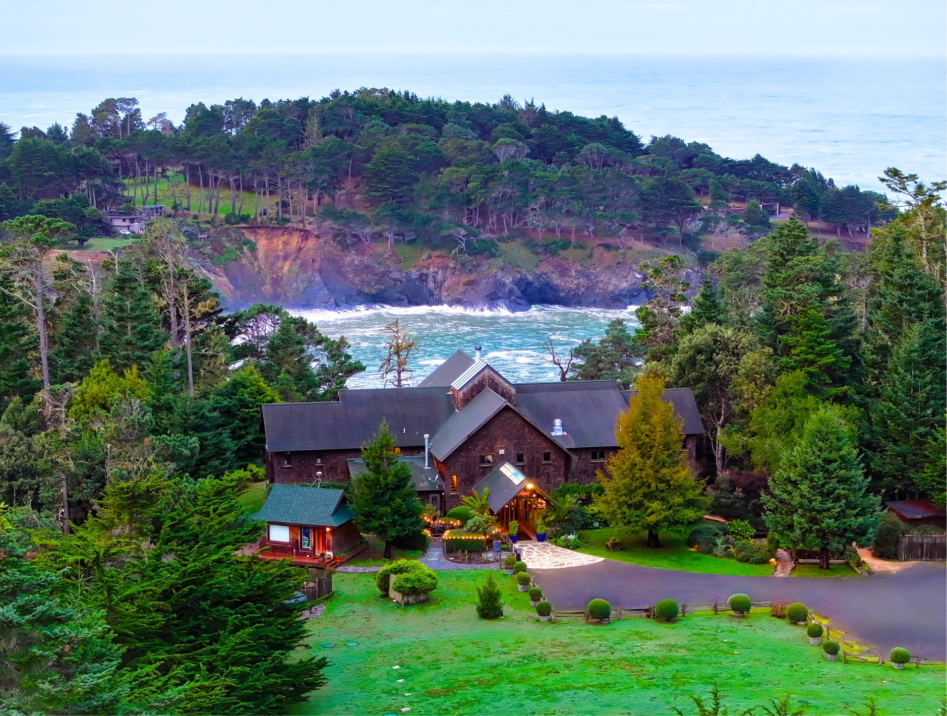 Perched high on a bluff overlooking the Pacific Ocean, this architectural masterpiece was built from eco-salvaged 'sinker' logs—some over 150 years old—reclaimed from their forgotten depths. Spectacular windows frame postcard views of ancient pines and the surf beyond. Named in the New York Times' 11 Hotels to Visit and Travel + Leisure's Top 15 Hotels in California, the Inn's rustic-chic aesthetic and holistic wellness offerings—forest bathing, sound healing, private yoga, tea tasting—set it apart from any other retreat on the Northern Mendocino coast.